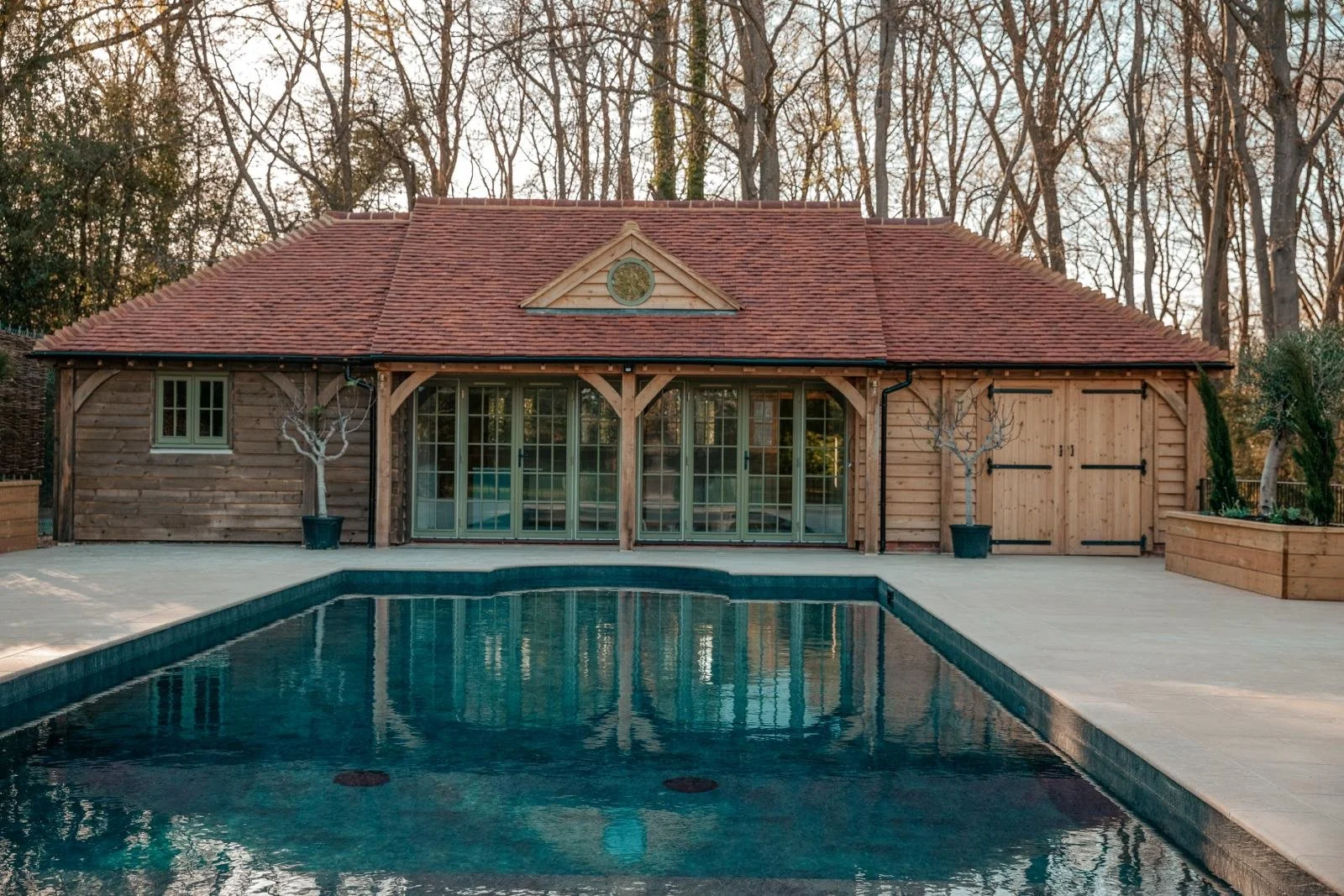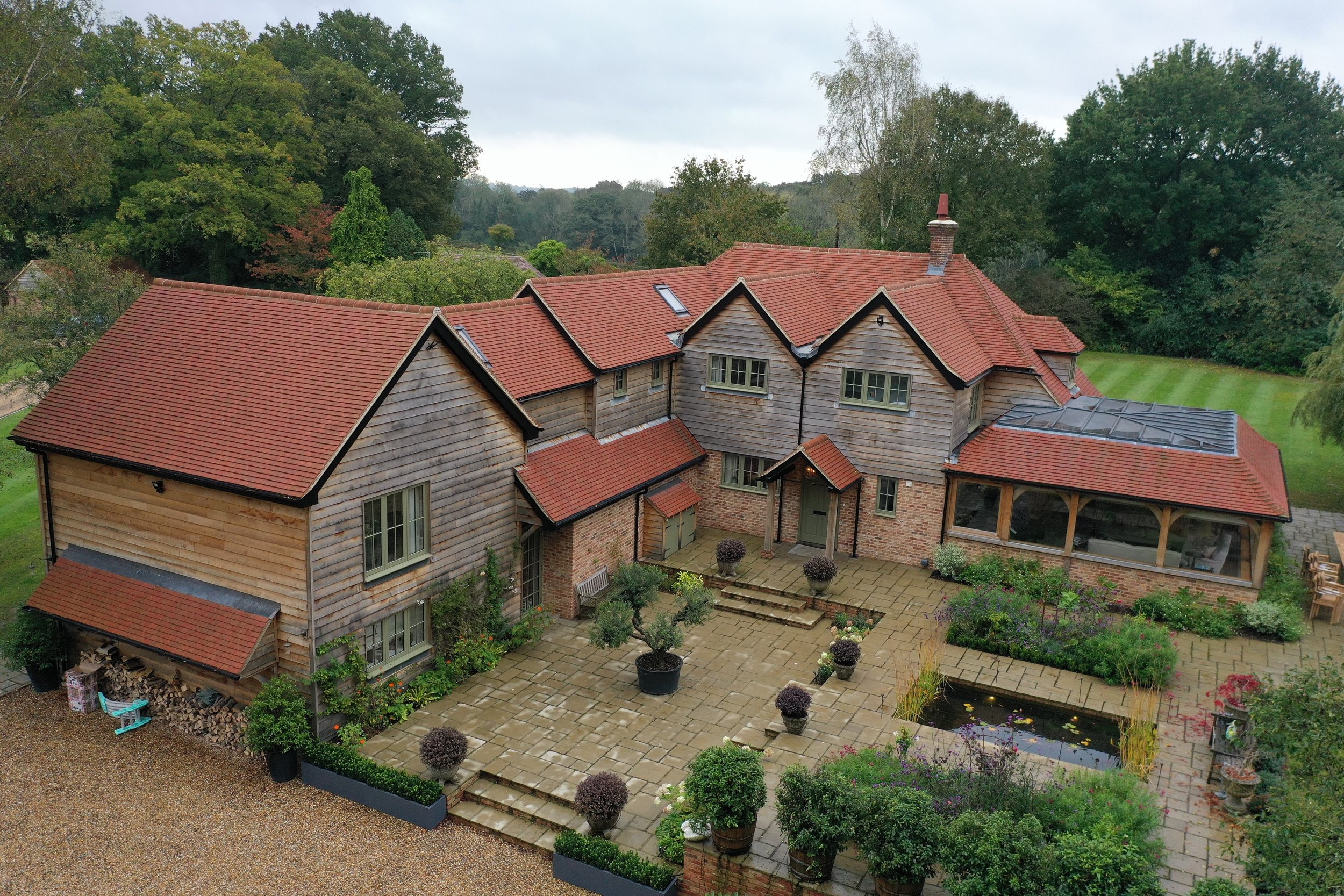 Description: Our client engaged us to provide a comprehensive range of professional services spanning two phases of work. In addition to cost planning and budgetary advice, we undertook tasks such as planning, detailed design, obtaining competitive tenders, contract administration, on-site work management, and CDM Principal Designer services. Phase 1 encompassed a complete refurbishment of the main house, involving reroofing, recladding, full internal refurbishment, extension, and external landscaping. This was followed by Phase 2, which involved constructing a new swimming pool and pool house alongside refurbishing an existing stable block. Beyond building and refurbishment, we also oversaw and coordinated the design and installation of a new GSHP heating system.